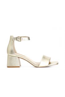 Sandals with metallic leather band. ankle strap. reinforced heel in the back. leather insole. 50 mm-high heel.