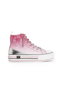 Mid-top sneakers characterised by an original degradé colour effect lace. ombre rhinestone laces. 40mm box sole with coloured details.