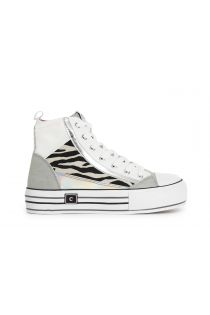 Mid-top sneakers featuring a glamorous zebra-patterned insert. lace-up closure. 40mm box sole with coloured details.