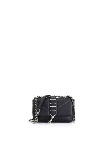 Black mini bag with rhinestone lace. shoulder bag with chain. magnetic clasp.