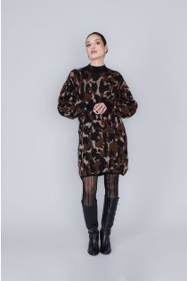 High-neck minidress with animalier jacquard detailing and lurex details. A casual, bold look with a regular fit for maximum comfort. The model is 172 cm tall and wears a size S.