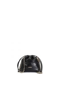 minibag with drawstring closure and chain shoulder strap with elegant threads black