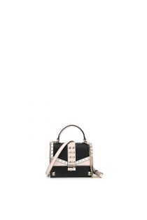 Minibag with multicolour patch, rows of pyramid studs and closing hardware with rhinestone
