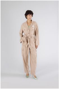 Field jacket made of a fresh blended fabric. nice removable pins that decorate the lapel. four button closure belted waist and four patch pockets. perfect garment for an adventurous outfit for going out with friends.