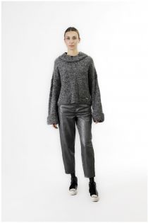 Cropped sweater with biker collar in wool blend yarn with moulinè workmanship. long kimono sleeves with cuffs give a touch of originality to the garment. loose fit.