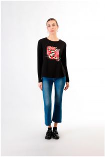 Long-sleeved t-shirt made of stretch cotton with multi-technical print.