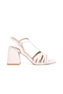 "t" suede sandals with multi-straps. the insole is in leather. comfortable 5.6 cm heel.