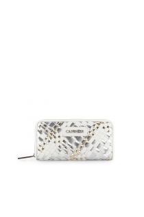 multicolor metallic braided round zip wallet silver/white