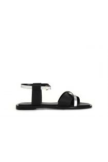 Multicoloured leather sandals with asymmetric straps and ankle strap.