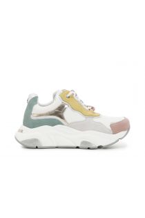 Sneakers with silver glitter inserts on the sole. The upper is made of nylon and multicoloured suede. The customised multicoloured chain with the cafènoir logo forms part of the lacing and is detachable.