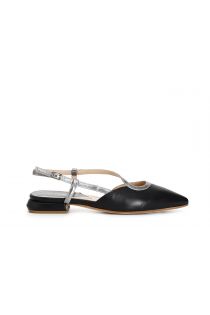 napa and laminate ballet flats with strap and asymmetrical topline black