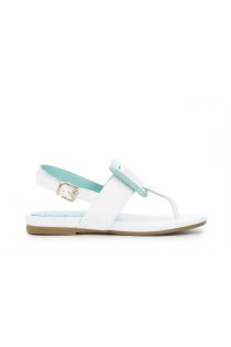 Split-toe sandals in soft Napa leather with statement padded square loop that acts as hardware. Comfortable fussbett.
