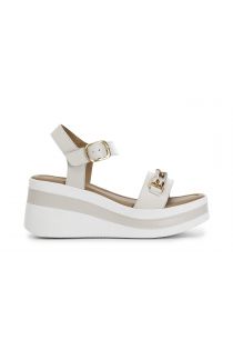 Napa leather sandals with rhinestone accessory. comfortable wide wedge with a padded insole clad with napa leather. adjustable buckle strap at the ankle.
