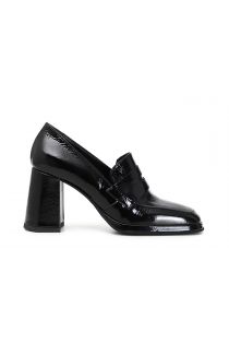 Naplack leather moccasins, square shaped, medium high heel