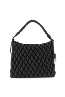 Nappa-effect bag with embossed workmanship and a quilted look. Adjustable braided handle and metal logo charm. Roomy, practical, and with a bold style.