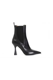 Nappa leather ankle boot with side stretch panel. shoe with an elegant and feminine style. slightly reel heel height 95mm. soft leather insole.