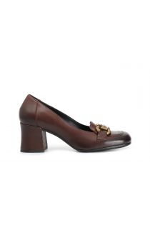 Women's soft nappa leather loafer with horsebit on the upper and leather insole. comfortable footwear with an innovative and refined style that is also very feminine. the toe and heel are squared.