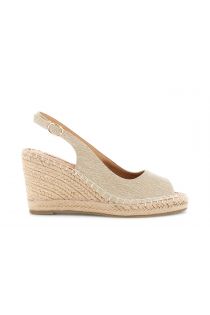 Canvas open-toe sandals. leather insole. 9 cm rope wedge and 2 cm platform. adjustable strap.