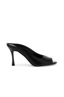 Elegant nappa mules with an open toe and 8.5 cm spool heel. the clean lines and slip-on design lend a modern and sophisticated look. perfect for enhancing any evening outfit.