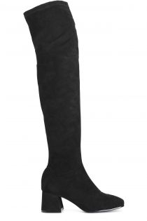 Stretch boot above the knee. 55mm high heel. comfortable leather insole. footwear with great personality.