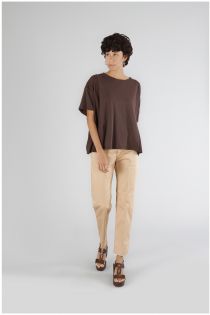 oversized bi-material t-shirt dark brown