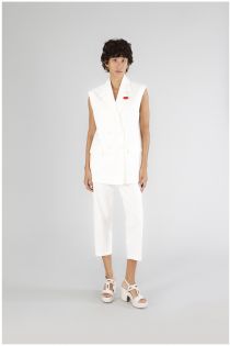 Oversized double-breasted waistcoat in stretch fabric. nice reversible pin on the left lapel. button closure. ideal for completing your most exclusive looks.