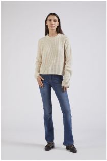 Wool-viscose yarn long-sleeved crew-neck oversize shirt.