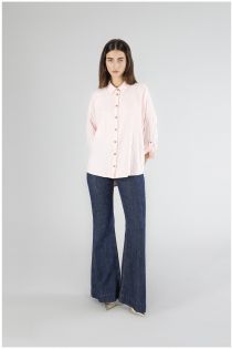 Oversized shirt made of a fresh blended fabric. long roll-up sleeves. button closure. wardrobe must-have to wear during the day with a pair of trousers or jeans.