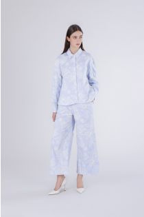 oversized shirt in striped and embroidered poplin light blue striped