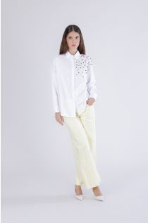 oxford shirt with rhinestone and stud applications white