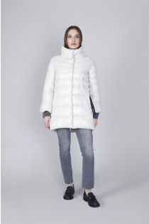 A-line cape with kimono sleeves and a wrap collar made of shiny nylon for a casual and versatile look. Regular fit, perfect for a fashionable and functional outfit. The model is 172 cm tall and wears a size small.