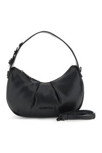 Hobo in smooth synthetic material padded with puffy effect with sequin flower appliqué. equipped with removable shoulder strap top zip closure and single compartment.