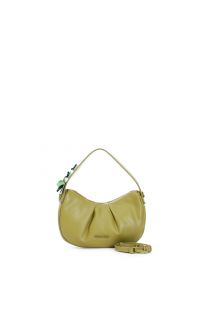 Hobo in smooth synthetic material padded with puffy effect with sequin flower appliqué. equipped with removable shoulder strap top zip closure and single compartment.