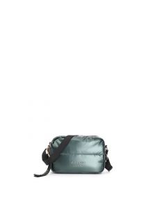Padded nylon camera bag rubber logo and removable charm. bag with a single compartment and an internal zip pocket. zipper closure. adjustable shoulder strap.