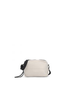 Padded nylon camera bag rubber logo and removable charm. bag with a single compartment and an internal zip pocket. zipper closure. adjustable shoulder strap.