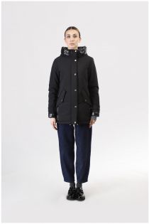 Bi-material parka with fixed hood. perfect garment for a busy everyday life. to be worn to go to work when bad weather strikes for a walk in the open air with family or friends.