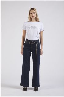 Palazzo fit jeans with jewelled belt made of comfort denim canvas.