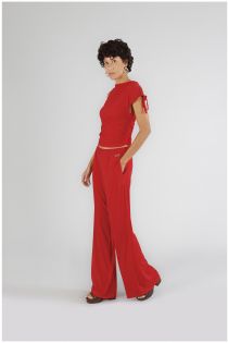 Palazzo trousers in superstretch fabric. model with elastic waist and side pockets giving practicality and comfort to the wearer.