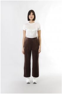 Palazzo fit sports trousers made of soft chenille. model with elastic waist and side pockets giving practicality and comfort to the wearer.