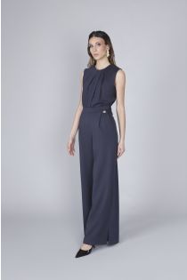 Palazzo trousers in stretch fabric with a side slit and elasticated waist at the back for a regular, comfortable fit. The model is 173 cm tall and wears a size S.