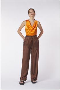 palazzo trousers with elasticated waist and drawstring in viscose fabric expressed