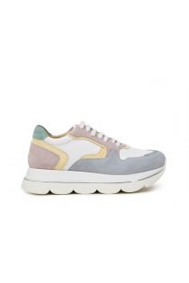 Pastel multicolour sneakers in suede on a double sole with wedge and scallop sole.