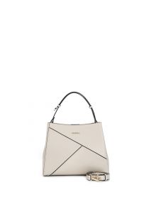 Patchwork bucket. zipper closure. removable shoulder strap.