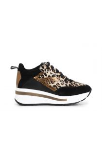 Laced leather sneakers with uppers embellished with animal print patchwork and patent details. two-tone raised sole with embossed logo.