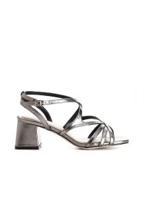 Patent effect sandals with crossed laces. the padded genuine leather insole makes the shoe comfortable even after several hours of use. the heel is 50mm.