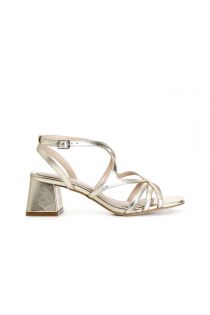 Patent effect sandals with crossed laces. the padded genuine leather insole makes the shoe comfortable even after several hours of use. the heel is 50mm.