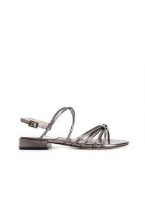 Sandals with multi-straps with a patent effect characterised by a double crossover. heart-shaped front accessory. comfortable padded insole for a soft fit. 20mm high heel. comfortable to wear and easy to pair with outfits.