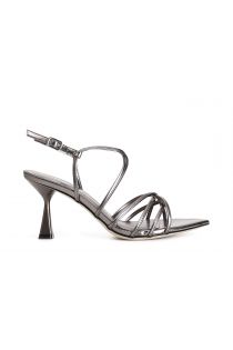 patent-effect sandals with crossed straps pewter