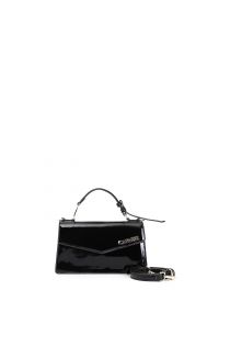 Rigid patent leather effect minibag with rhinestone cafènoir logo on adjustable handle. magnetic closure. bag with shoulder strap.