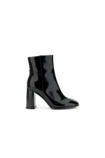 Women's patent leather ankle boot. zipper on the inside. 88 mm square heel. the insole is in leather. very versatile and chic shoe to interpret office and leisure looks with style.